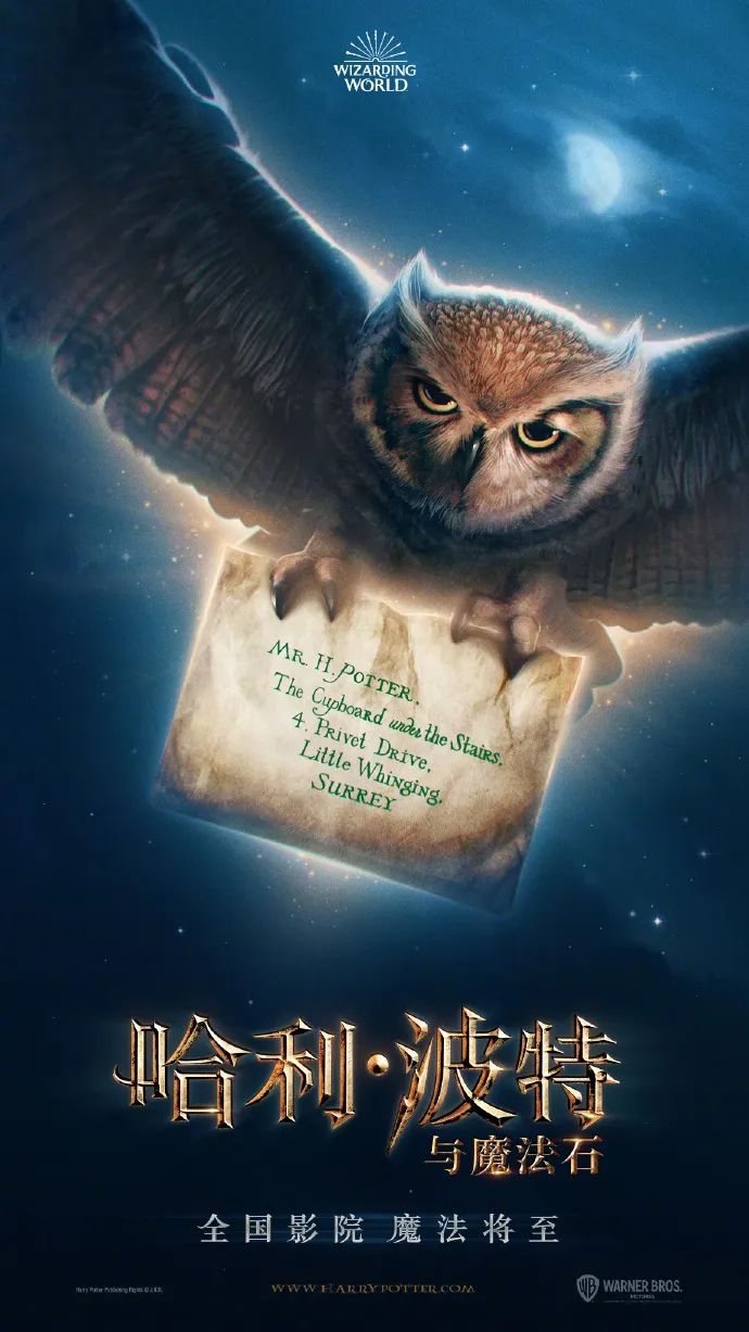 3月19日,华纳兄弟给中国影迷送上一份大礼包,通过官微宣布电影《哈利·波特与魔法石》将在中国重映,并很哈利·波特风格地发布海报语“全国影院,魔法将至”。
