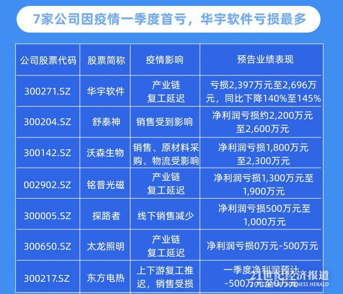 “疫”中季报丨受疫情影响公司数攀升,7家公司预计一季度首次亏损
