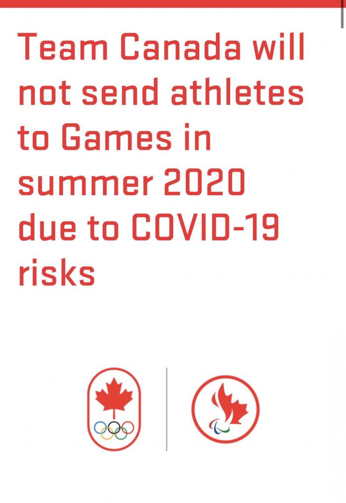 加拿大奥委会(COC)和残奥委(CPC)当地时间3月22日联合声明称,就东京奥运会作出了艰难的决定,鉴于新冠疫情的形势,将不派选手参加今年夏天举行的奥运会。加方强烈呼吁,IOC和世卫组织等考虑延期一年举行东京奥运会。加方表示,这不仅事关运动员的健康和安全,这是全球性的公共卫生事件。