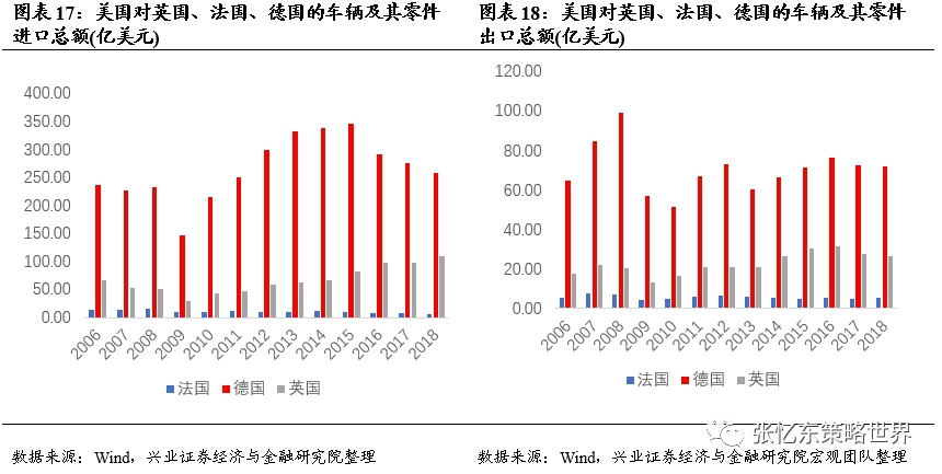 首先,疫情冲击下,欧洲经济衰退风险在欧元区内部相互传染,并可能通过相关产业的供应链向美国传导。欧洲疫情肆虐,进而威胁着美国相关产业的供应链。以汽车产业链为例,有大量产品组配件(汽车引擎和零件等),从欧洲出口到美国,若欧州供应商生产低迷,直接导致美国工业生产不足,形成到失业的传导。