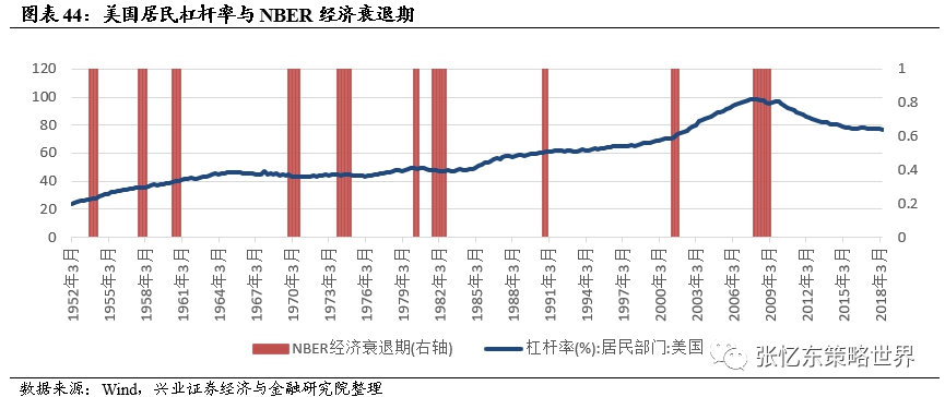 很多情况下,债务周期领先于资产价格上涨;金融资产价格下跌领先于杠杆率,逻辑是:当金融资产价格下跌,家庭负债结构恶化,人们开始减少消费,减少借贷,产出下降,这种正反馈往往十分剧烈,直到引发衰退;