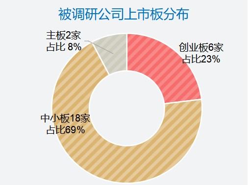 从板块来看,主板公司仅电广传媒、冀东水泥两家,其余均为中小创。值得注意的是,被调研公司均为深交所上市公司。