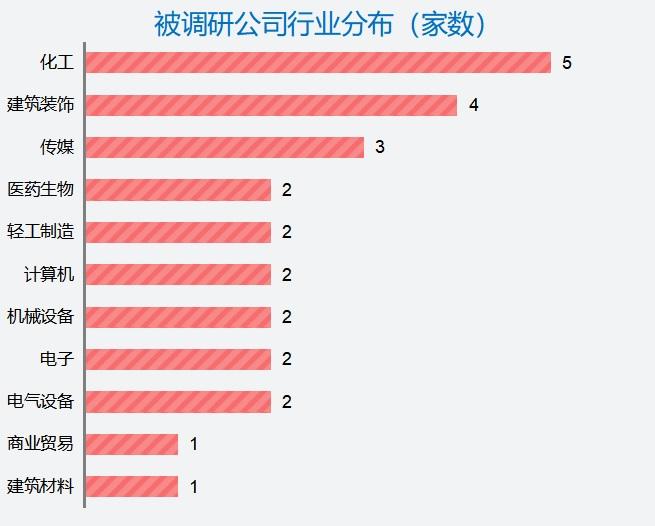 从行业板块来看,化工、建筑装饰、传媒等公司相对较多。