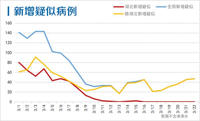 截至3月22日24时,全国现有疑似病136例,新增疑似病例47例,连续16天保持在两位数。湖北新增疑似连续7天0增长,现有疑似病例保持为零。