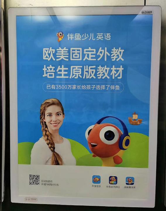 近期,一向低调的新锐在线少儿英语品牌“伴鱼”玩起高调的品牌曝光,其线下品牌广告一夜之间铺满北京市社区及楼宇电梯。