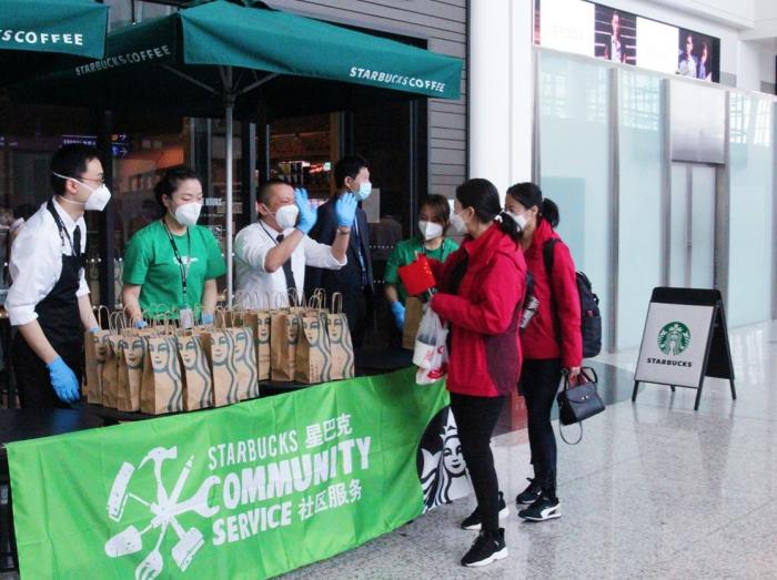 上图为星巴克天河机场店上周六开始起专门为离汉的援鄂医护人员免费赠送咖啡,以表敬意,该门店尚未营业