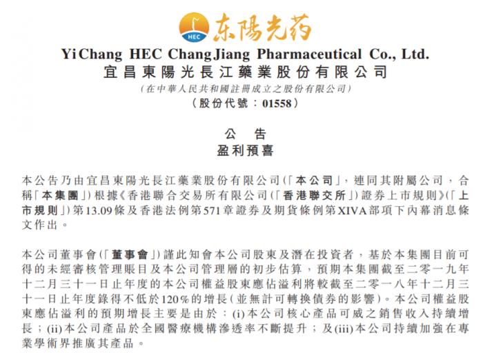 2月24日,东阳光药发布盈利预喜,预计2019年权益股东应占溢利将同比增长超过120%,得益于公司核心产品可威(奥司他韦)的销售收入持续增长,产品在全国医疗机构的渗透率不断提升,公司也在持续加强在专业学术界推广产品。有预测认为,2019年可威销售额同比增长有望达149%。也就是说,东阳光在2019年奥司他韦产品营收或将近60亿元。