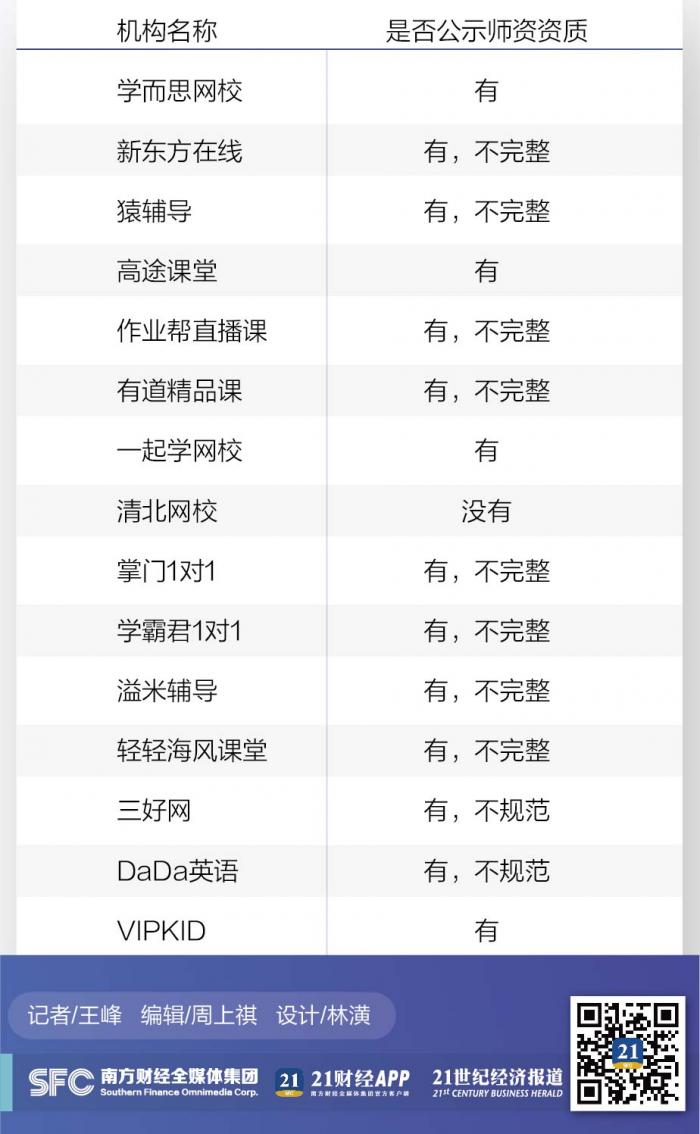 师资资质:一对一机构信息公示较差