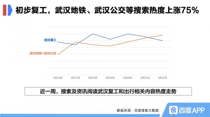 随着中国疫情逐渐步入尾声,“复工”和“抗疫”的关注度也越来越高。近一周,武汉解封相关内容搜索热度环比上涨49%。