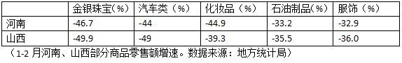 发布了限额以上单位商品零售情况的省份为河南省和山西省。21世纪经济研究院研究员认为,两地的相关商品零售情况,亦有“管中窥豹”的作用。