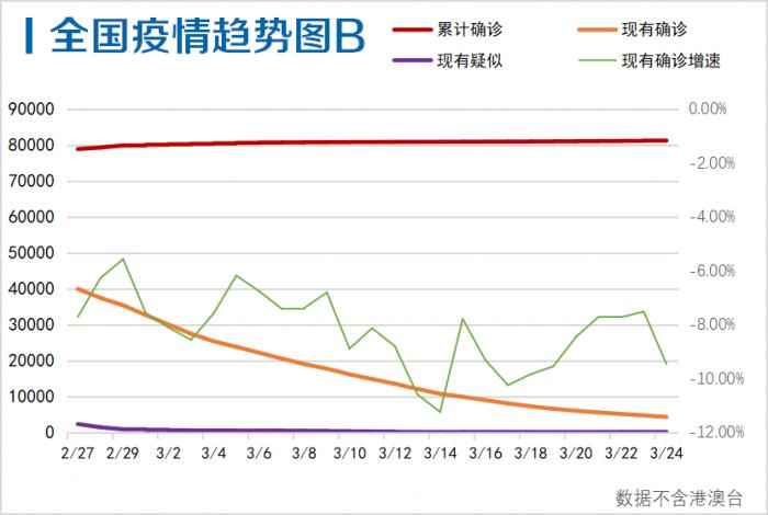 重症病例持续减少,截至3月24日24时,全国重症病例减少174例,现有重症病例降至1399例,重症率降至1.72%;湖北现有重症降至1368例(武汉1358例),重症率降至2.02%;全国除湖北重症病例降至31例,持续下降。