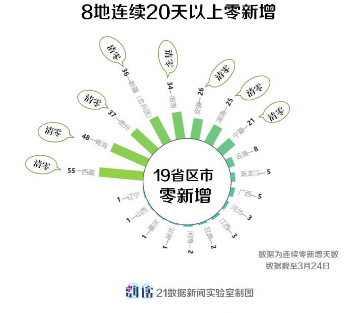 据21数据新闻实验室统计,截至3月24日24时,全国(不含港澳台,下同)新增确诊病例47例,其中湖北新增确诊病例0例(武汉0例),武汉重返零新增,湖北除武汉已连续20天零新增。
