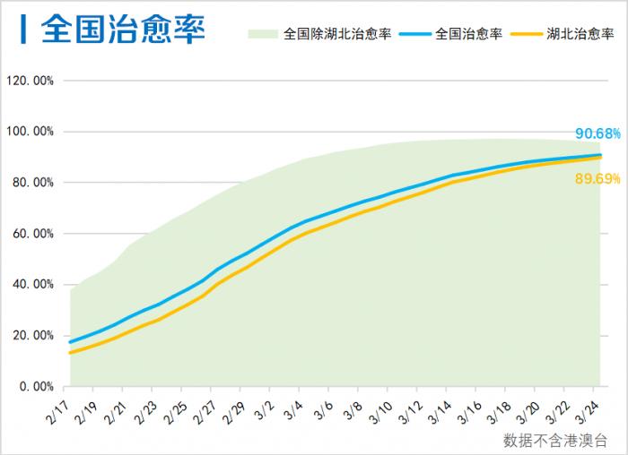 据21数据新闻实验室统计,全国治愈率持续攀升,达90.68%,湖北已有89.69%的患者治愈出院。
