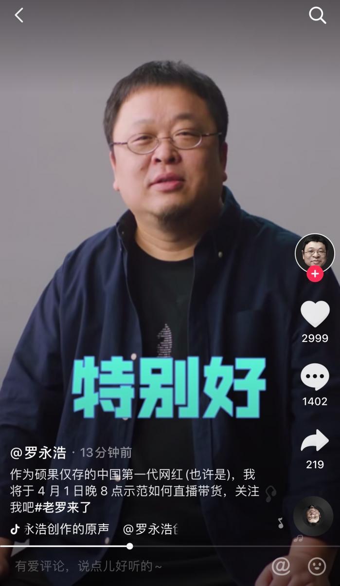 在一周前宣布将开始直播带货后,罗永浩的合作厂商终于敲定。3月26日,罗永浩在抖音平台发布视频,正式宣布抖音成为其独家直播带货平台,并将于4月1日晚开启直播首秀。