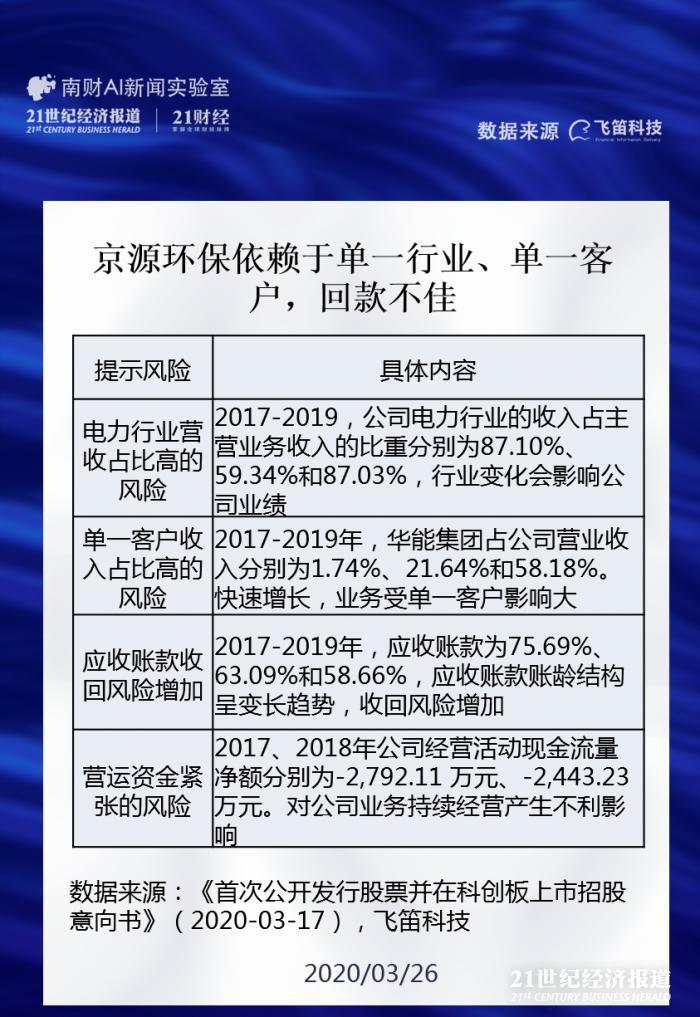 新股排查丨京源环保收入依赖单一客户,回款不佳现金流持续为负,募资能否补救经营贫血?