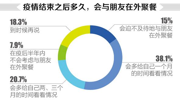 不过让人欣慰的是,调查显示,受访者对外出就餐并不排斥。有73.8% 的受访者会在疫后3个月后普遍选择外出就餐,餐饮行业有望恢复繁荣。