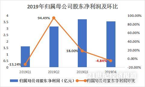 3月25日A股盘后,沪电股份发布了2019年年报。数据显示,公司实现营业收入约71.29亿元,同比增长约 29.68%,增长依旧稳健;实现归属母公司股东的净利润约12.06 亿元,同比增长约111.41%,增速相较去年和2019年中均有所下滑。从环比看,2019年四季度公司归属母公司股东净利润下降约4.84%。
