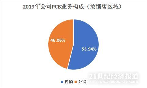 从业务销售区域结构来看,2019年公司PCB业务外销营业收入31.71亿元,占比达46.01%,内销营业收入37.14亿元。在当前国内疫情逐步好转、海外疫情加剧的情况下,公司海外业务收入或将供应链不稳定和需求订单下降带来的影响。