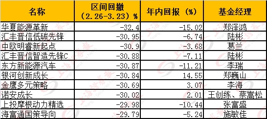 以银河创新成长为例,从年初开始净值一路上飙,到2月25日年内收益已经高达65.62%。但随着市场的调整,该基金净值也大幅回撤,到3月23日年内收益已经降至14.55%,净值回撤30.84%。