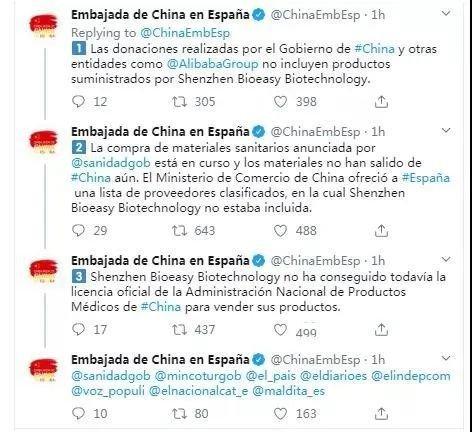 对此,中国驻西班牙大使馆发文澄清称: