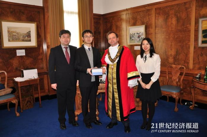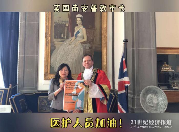 (留学生拍摄南安普顿市长祝福中国,提供者:留学生骆菲菲)