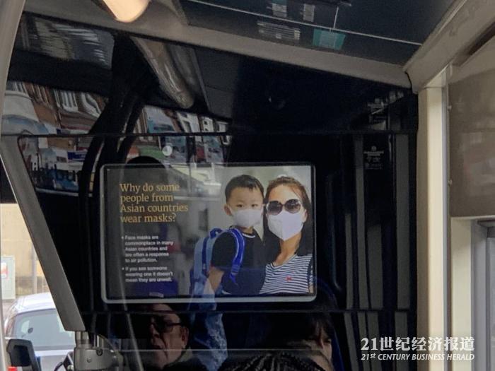 (学校在公共场合解释为什么亚裔学生习惯戴口罩,拍摄者:留学生骆菲菲)