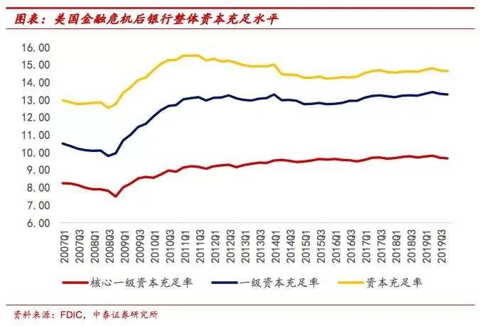 迄今为止,尽管股市大跌,但仍没有出现哪家大型金融机构破产案例,这也是与08年次贷危机存在明显差异,08年的危机爆发链非常明显:房价下跌-次贷危机-金融产品爆仓-投行破产,但相比07-08年,商业银行“资本”抵抗风险能力增强50%以上,美国大型金融机构参与CLO程度明显低于08年,大型银行的风险偏好是在下降,各类银行的资产配置趋向均衡,房地产的关联度下降。
