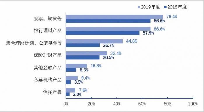 散户是A股投资者的最主要群体。调查显示,2019年自然人投资者的投资经验有了较大幅度的提高,其中,购买过集合理财计划、公募基金的投资者占比增长最快。