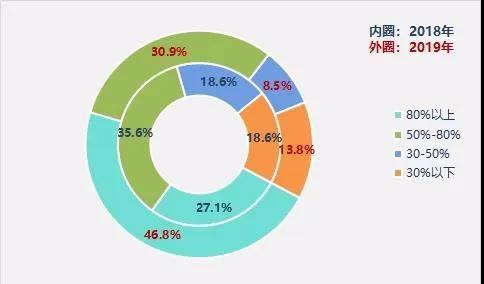 与此同时,专业机构投资者的股票持仓仓位亦明显提升。其中,仓位在50%以上的机构占比从2018年的62.7%升至2019年的77.7%,仓位在80%以上的机构占比从27.1%升至46.8%。