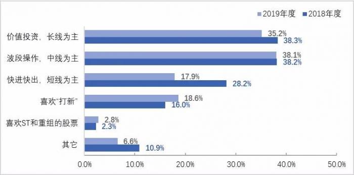 在投资风格上,自然人投资者倾向于以中长线投资为主,持短线操作风格的投资者比例下降明显。