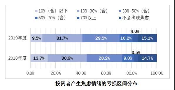 受调查投资者能够承受的股票亏损比例有所提高,六成投资者在股票亏损10%-50%时会出现焦虑。
