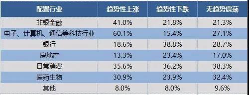 专业机构投资者在不同市场预期下重点配置的行业占比明细表