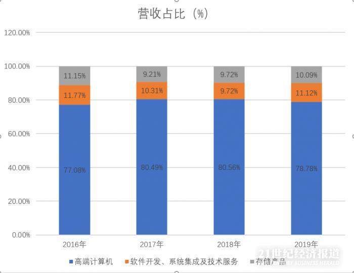 从营收占比上看,高端计算机长期以来是营收的主力,在2016年-2018年,营收占比持续上升,2019年占比虽略有下降,但占比仍在78.78%。