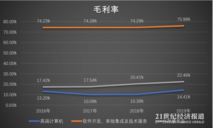 公司表示,2019年公司加大高附加值的服务收入比例,充分发挥相关产品优势,保证了公司毛利额的增长。从计算机、软件开发、存储产品三大业务的毛利率分别增加4.03%、2.05%、1.72%也验证了这一点。值得注意的是,第一大业务高性能计算机由2018年的10.38%提高至14.41%,同比增长高达38.8%,仅此业务的利润贡献就较去年增加了3亿之多,这也是今年利润增速明显高于营收增速的主要原因。