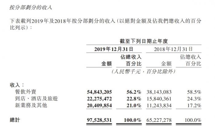 餐饮外卖业务方面,2019年交易金额增长38.9%至人民币3927亿元,日均交易笔数增长36.4%至23.9百万笔,收入同比增长43.8%至人民币548亿元,毛利增长94.2%至人民币102亿元,毛利率由13.8%同比上升至18.7%。