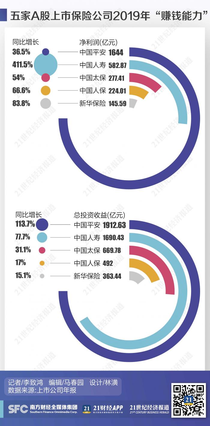 随着五家A股上市保险公司2019年业绩报告的出炉,中国人寿、中国人保、中国平安、中国太保、新华保险的“赚钱能力”见分晓。