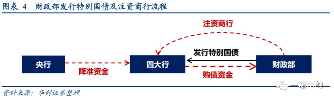 1998年2月,第八届全国人大常委会第三十次会议审议通过《国务院关于提请审议财政部发行特别国债补充国有独资商业银行资本金的议案》。3月,央行将存款准备金率由13%下调至8%,为四大行释放了近2400亿的资金,人民银行要求四大商业银行将这些资金以及部分超储共计2700 亿元存到在中央银行的专用户头上,为日后认购国债做准备。