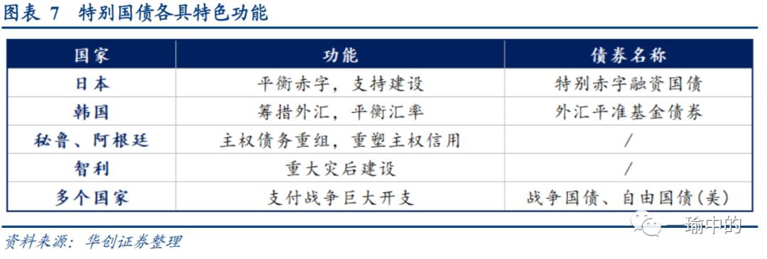回顾我国特别国债的发行经验后,我们进一步了解海外国家发行特别国债的案例。特别国债在全球应用的例子广泛、功能各异。