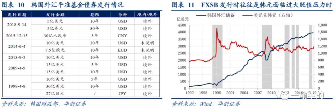 此后外汇平准基金债券成为韩国在特殊时期稳定汇率、补充第二外汇储备的手段。2008-2009年、2013-2018年均偶有发行。特别是在2015年还曾发行过以人民币计价的30亿元FXSB,以应对韩元相对人民币的贬值压力。值得注意的是,韩国外汇平准基金债券基本向境外市场融资,资金用途也作用于外汇市场,并没有直接对韩国境内流动性造成影响。