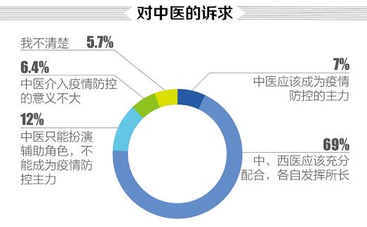 《疫后经济生活预期调查》显示,69%受访者表示,中、西医应该充分配合,各自发挥所长。