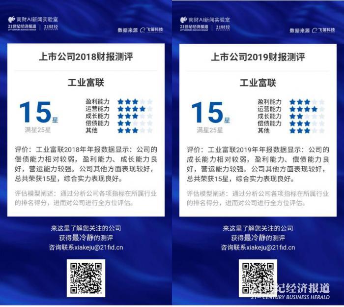 南财AI新闻实验室“财报测一测”AI测评显示,工业富联2019年测评综合实力较2018年持平。盈利及运营能力持平,偿债能力有所提升,成长能力因营收增速再次回落而评分有所下调。