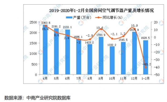 根据产业在线最新发布数据,受疫情影响,2月空调总出货量553万台,同比下降42%。其中,内销161万台,同比下滑67%,相当于2008年2月的出货量水平;出口391万台,同比下跌13%。
