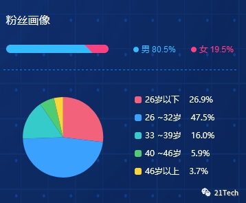 抖抖侠数据显示,这场直播中罗永浩的粉丝超80%为男性,近75%粉丝年龄小于32岁,近半数在26-32岁区间,再次印证老罗的粉丝绝大部分是年轻直男的结论。