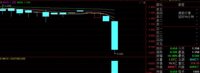 震惊!甘肃银行今日在H股市场暴跌43.48%,收盘价为0.65港元/股,盘中最低为0.58港元/股,已经进入仙股行列,也是目前银行板块唯一的仙股。