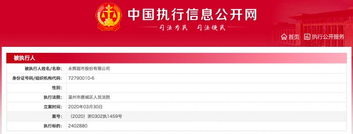 3月31日,永辉超市被媒体曝出,公司运营主体永辉超市股份有限公司被温州市鹿城区人民法院列为被执行人,执行案号为(2020)浙0302执1459号,执行标的为240.288万元。