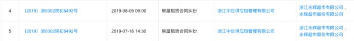 此外,记者进一步了解到,永辉超市被列入“黑名单”源于2019年的一起房屋租赁合同纠纷(案号为(2019)浙0302民初6492号)。当时,原告浙江中世供应链管理有限公司将永辉超市、浙江永辉超市有限公司告上了法庭。2019年8月,该案进行了一审开庭。