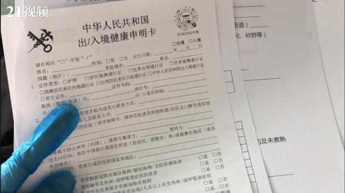 下飞机后,所有乘客都被工作人员贴上号码牌,随之被带领去线上填写一系列申报表。杨心对其之前在英国时患感冒的情况如实填写。本以为没什么问题,但随后就发现自己被归类到了有症状一类,当场被要求做核酸检测。
