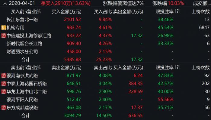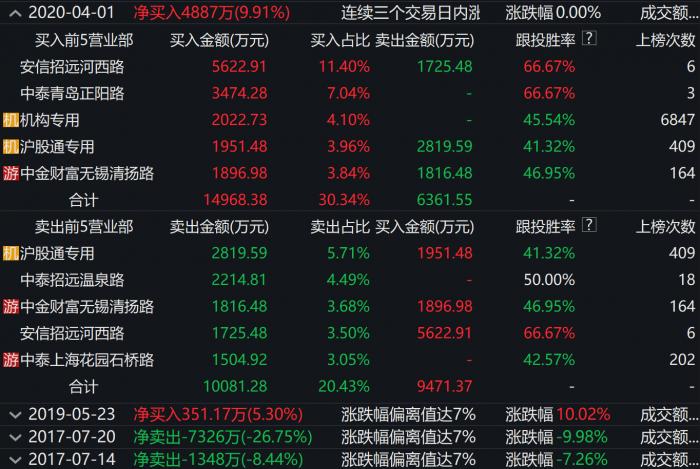 而在早前的2月24日和3月16日上龙虎榜,呈净卖出状态。不过,2月24日买入方主要是机构资金,而3月16日,机构资金则主要扮演了卖出方。