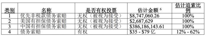 目前,贾跃亭已收到的索赔金额约90亿美元,其中包括超3.86亿美元的中国有担保索赔和86亿美元的债务索赔。需要指出的是,这些收到的索赔并不一定全部计入,贾跃亭还保留了对这些索赔额提出异议或者寻求估算的权利。