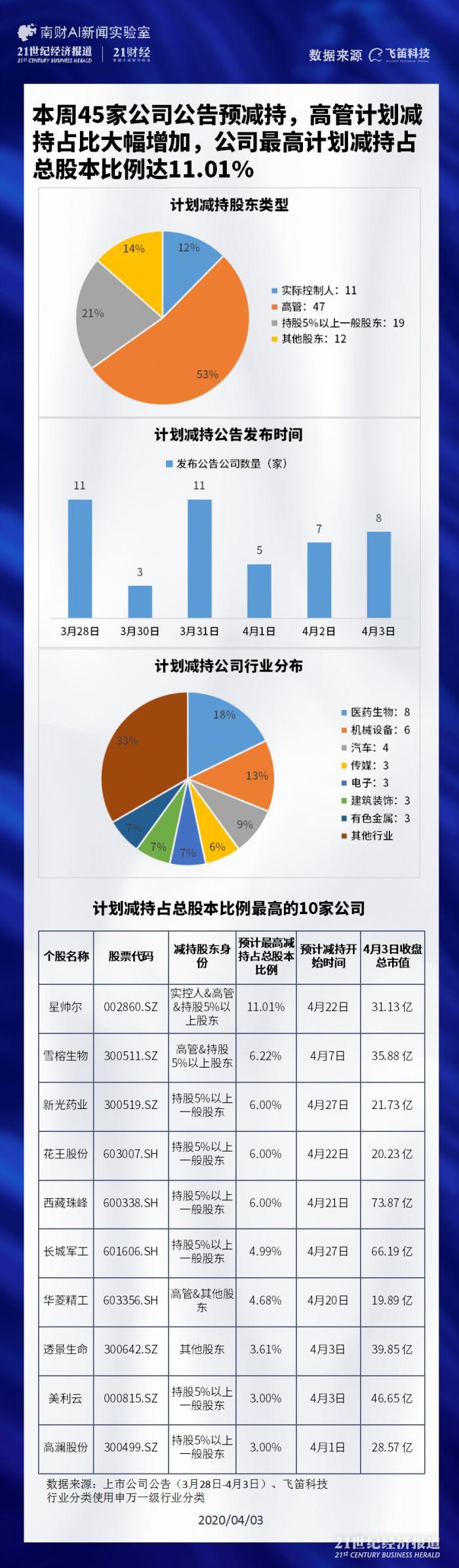 风口观察|上市公司绿榜:本周45家公司公告预减持,高管计划减持占比暴涨